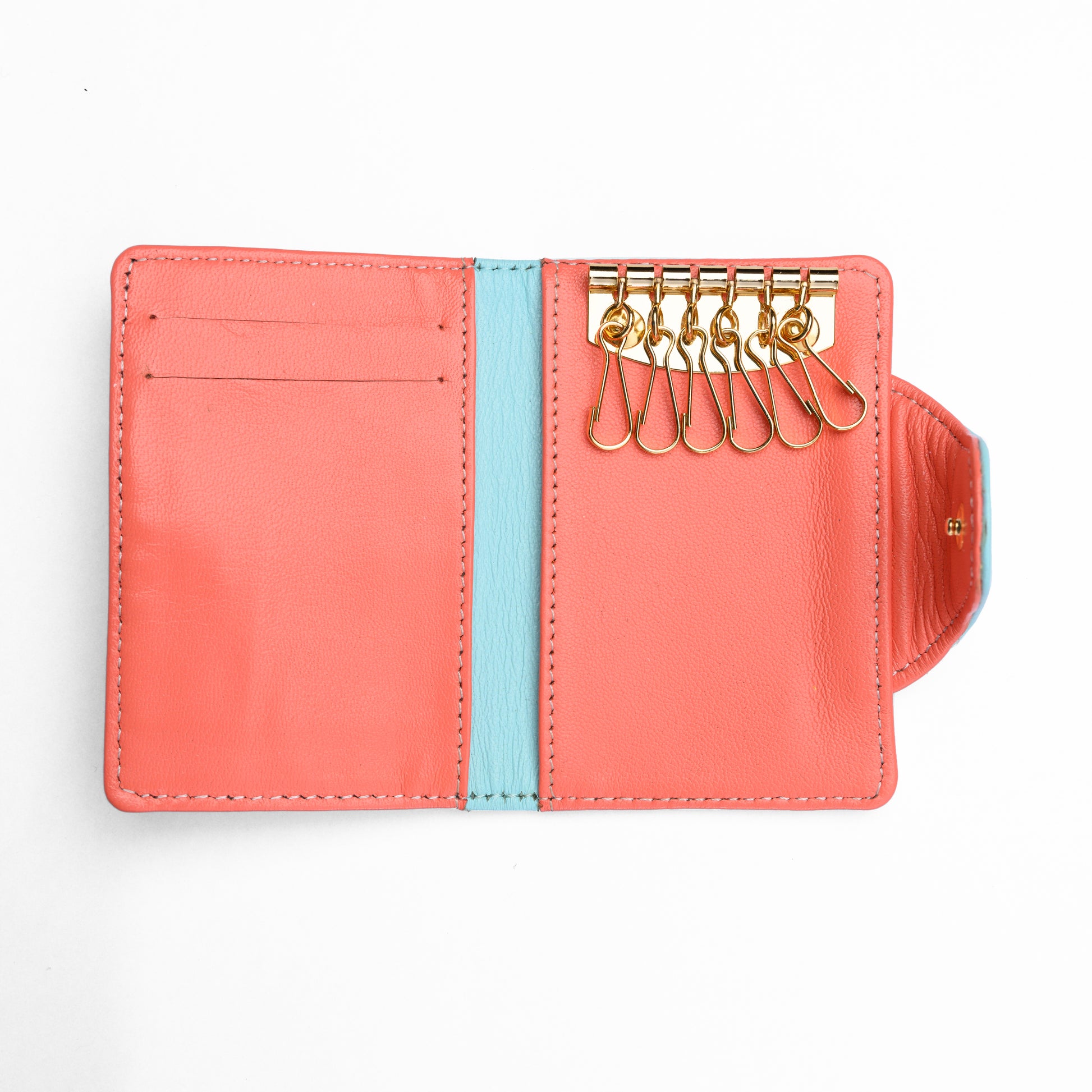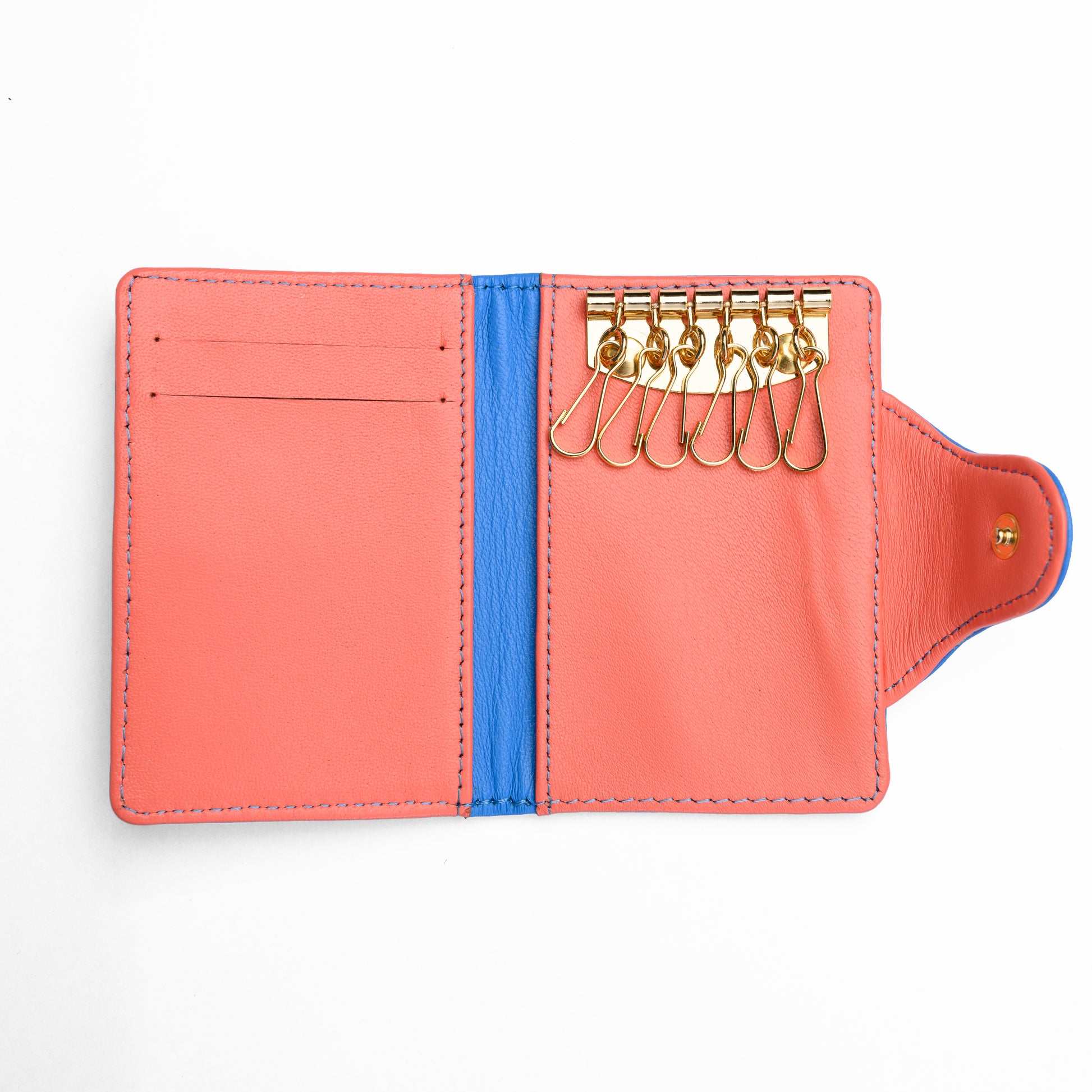 Hand-burnished edges, precision stitching, and contrast lining for a discreet pop of color and form.